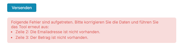 | Anrede | Muss "Herr" / "Frau" oder leer sein. Sofern leer, wird eine neutrale Anrede verwendet. |