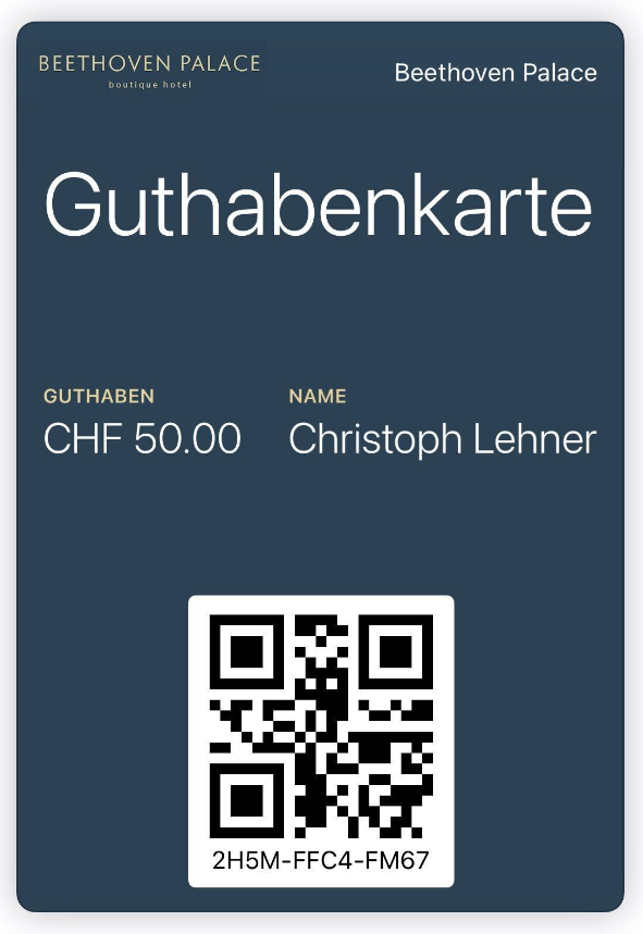 Digitale Guthabenkarten werden wie normale Gutscheine eingelöst. Sie haben einen QR-Code, der gescannt werden kann, oder der Code kann für die Einlösung eingetippt werden.