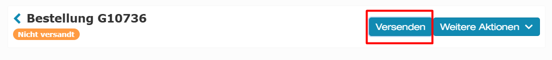 Klicken Sie in der Bestellverwaltung auf der Detailseite der Bestellung auf die Aktion Versenden.